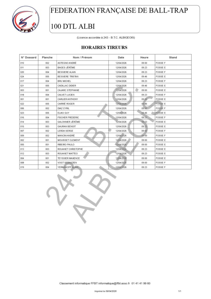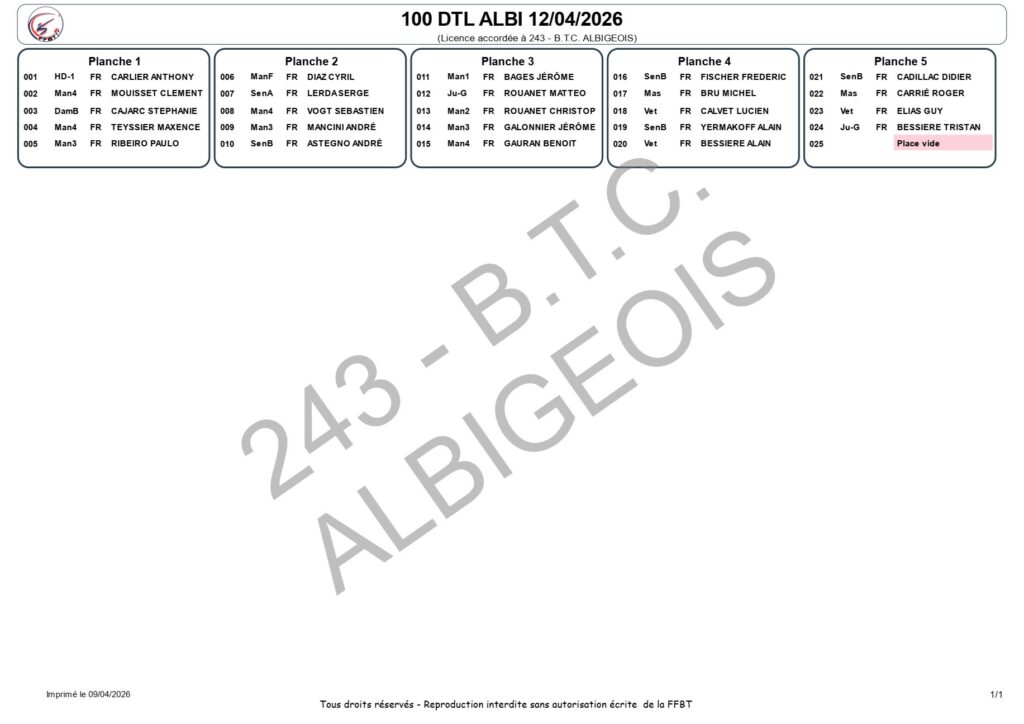 BTC ALBIGEOIS : 100 DTL le 12 avril 2026