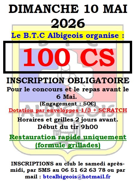 BTC ALBIGEOIS : concours en 100 CS le dimanche 12 mai 2026