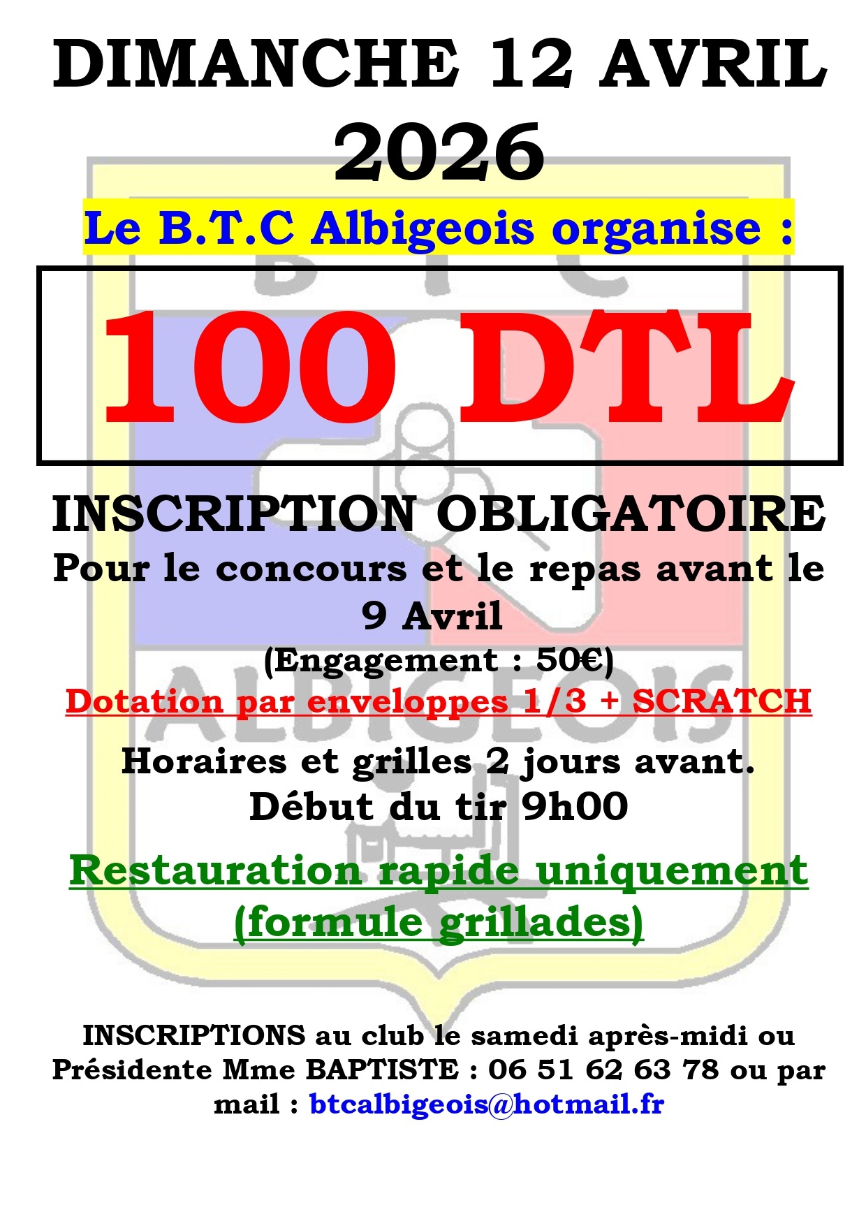 BTC ALBIGEOIS : concours en 100 DTL le dimanche 12 avril 2026