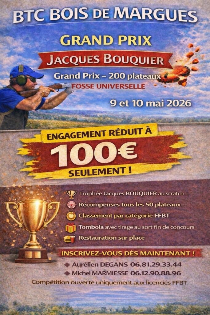 Changement tarifaire pour le Grand Prix Jacques BOUQUIER en 200 FU prévu les 09 et mai 2026 au BTC BOIS DE MARGUES :