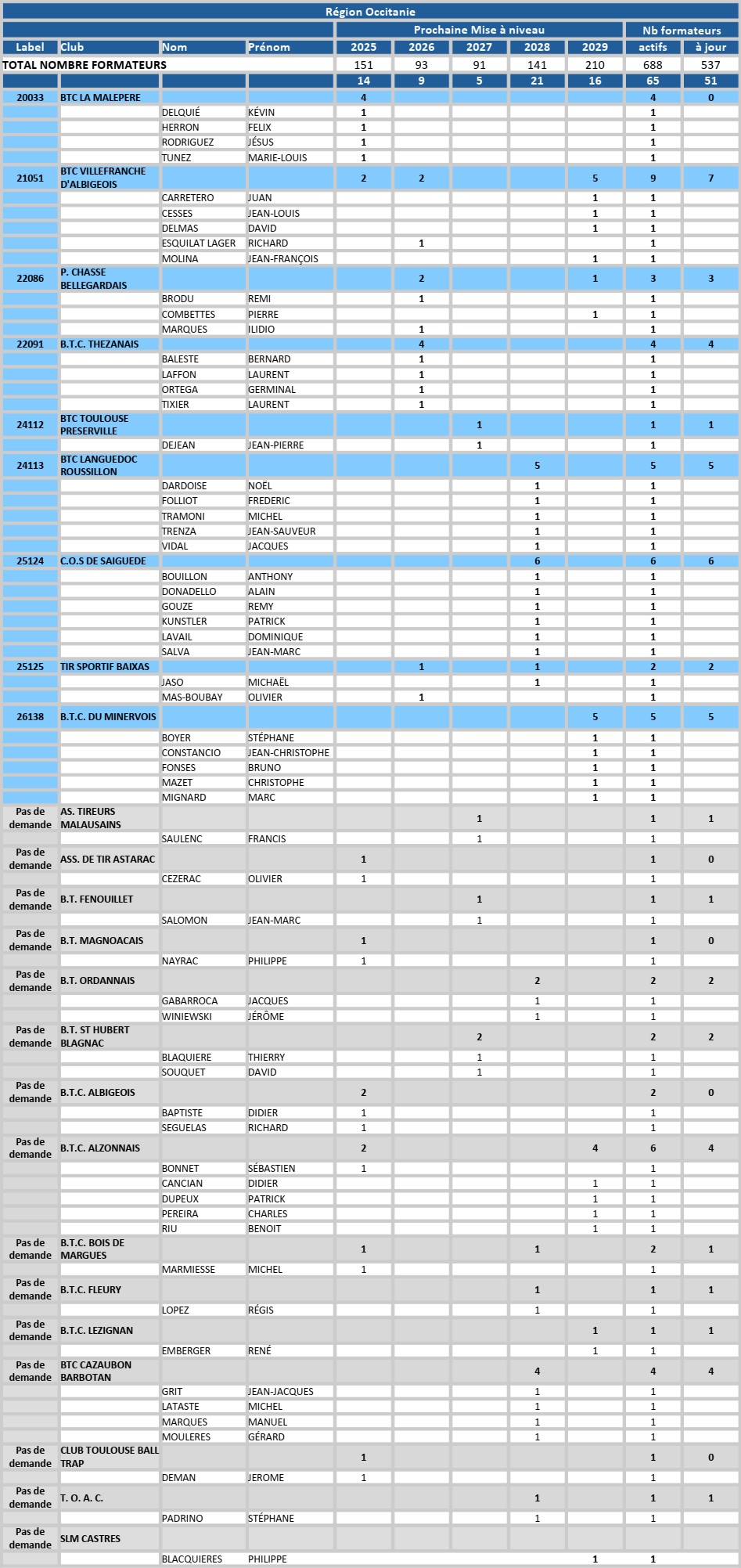 Liste des initiateurs 2026