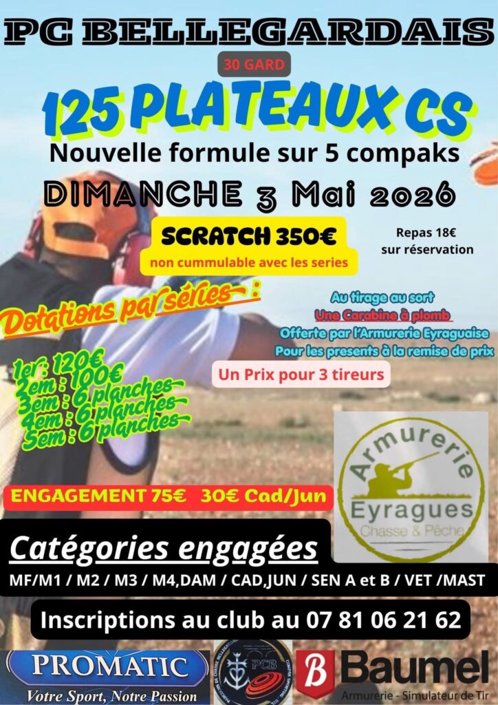 Inscription pour le 125 CS du dimanche 03 mai 2026 à Bellegarde (11) au 07.81.06.21.62